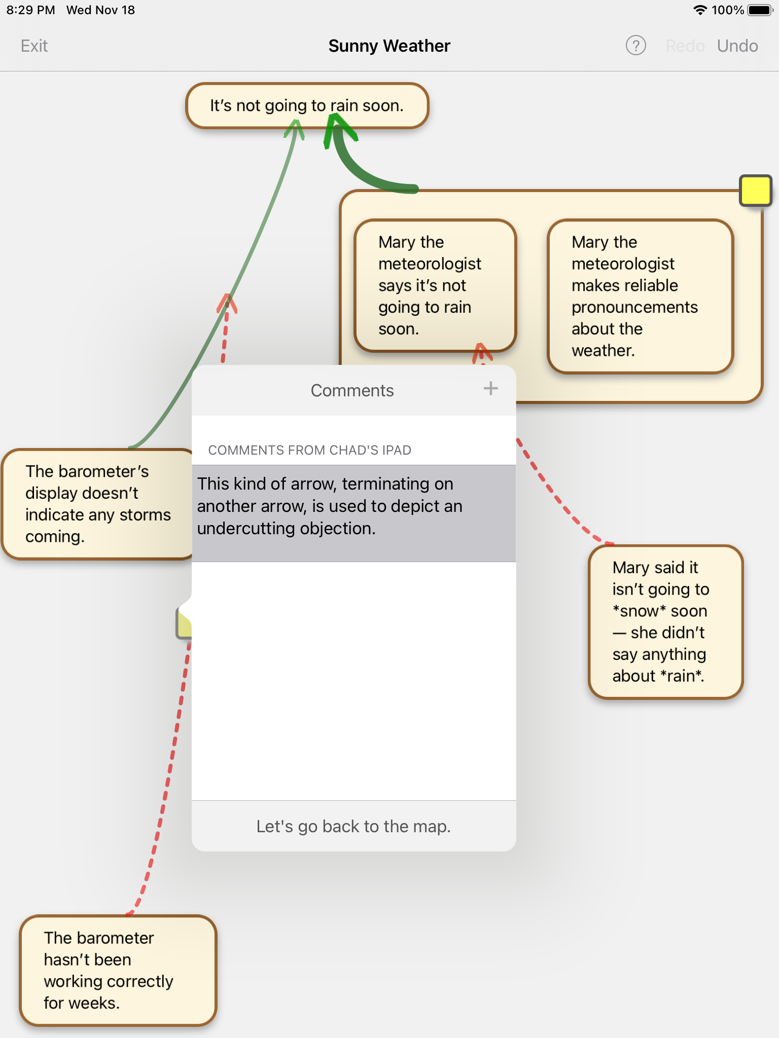 I wanted to provide my students with a technology-facilitated mapping experience where the technology makes argument-mapping easier rather than more difficult. Not finding such a piece of software that could provide such an experience, I decided to make one myself. I have some experience as an iOS developer, so I set about creating an app. The result is ArguMap!